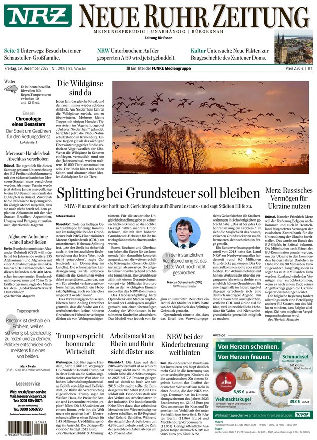 Ergänzt wird das inhaltliche Angebot durch das aktuelle Fernsehprogramm, Familienanzeigen und den Marktplatz mit Kleinanzeigen. Für Kinder gibt es eine eigene Seite, die mit dem Namen "Knuts Klartext" betitelt ist. Die erste Ausgabe der Tageszeitung, die zur Funke Mediengruppe gehört, erschien am 13. Juli 1946. Die gedruckte Ausgabe und das ePaper der NRZ sind inhaltlich und von ihrer Aufmachung her identisch - die digitale Tageszeitung liefert Ihnen die gewohnte Qualität der Print-Ausgabe.