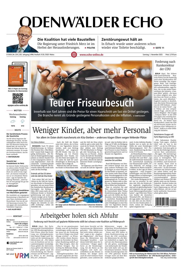 Das Odenwälder Echo ist Ihre traditionsreiche Informationsquelle, die mit umfassender Berichterstattung aus dem Odenwaldkreis alle Facetten von aktuellen lokalen Nachrichten über politische Entwicklungen und Wirtschaftsthemen bis hin zu Kultur, Sport und gesellschaftlichen Ereignissen abdeckt.