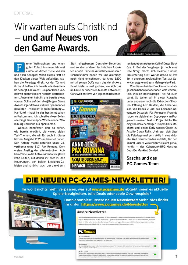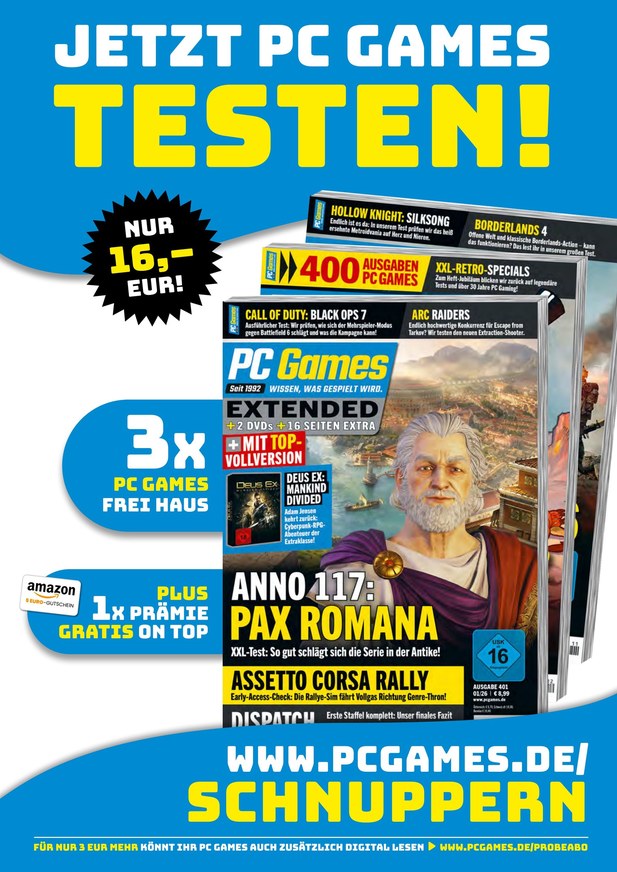 Erfahren Sie in der Computerzeitschrift PC Games (PCG) alle Neuigkeiten rund um die Themen Computerspiele und Gaming. Das ePaper erscheint monatlich, Sie können es ganz unkompliziert auf Smartphone, Tablet und Computer lesen.