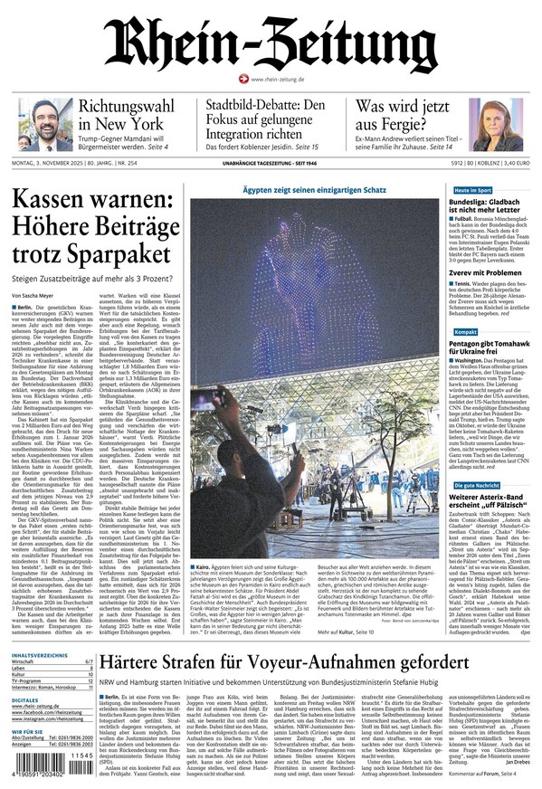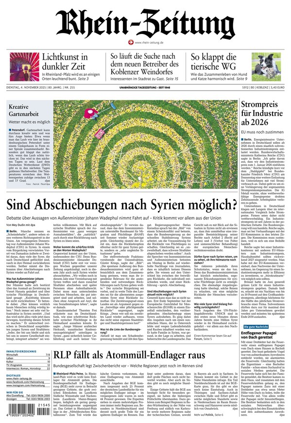 Lesen Sie in der Rhein-Zeitung Nachrichten aus Deutschland und der Welt. Von Politik und Wirtschaft über Sport bis zu wissenschaftlichen Themen finden Sie alle aktuellen News im ePaper der Zeitung. Weiterlesen...