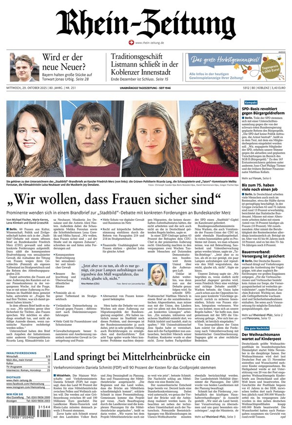 Lesen Sie in der Rhein-Zeitung Nachrichten aus Deutschland und der Welt. Von Politik und Wirtschaft über Sport bis zu wissenschaftlichen Themen finden Sie alle aktuellen News im ePaper der Zeitung. Weiterlesen...