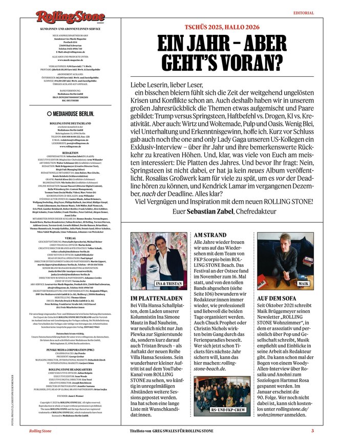 Herausgegeben wird der ROLLING STONE von der Axel Springer Mediahouse Berlin GmbH.