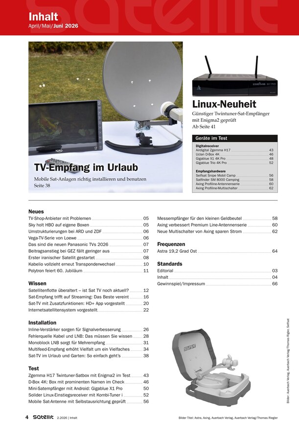Testmagazin für alle Nutzer digitaler Satelliten-Anlagen