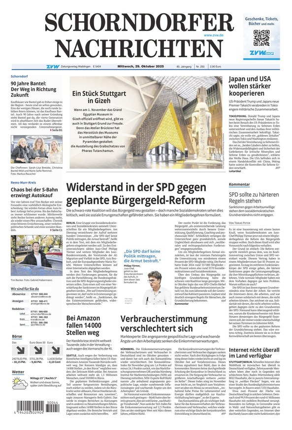 Die Schorndorfer Nachrichten berichten täglich über alles, was in Schorndorf und Umgebung wichtig ist. Das ePaper Ihrer regionalen Tageszeitung informiert Sie über alle News und Themen. Weiterlesen...