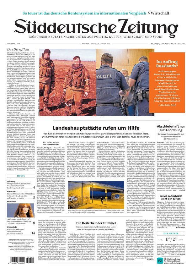 Die Süddeutsche Zeitung (SZ) liefert tagesaktuell Nachrichten und Hintergrundberichte aus Politik, Wirtschaft, Sport und Kultur. Das ePaper der Tageszeitung informiert Sie über alle relevanten News. Mit der Beilage des SZ Magazins am Freitag! Weiterlesen...