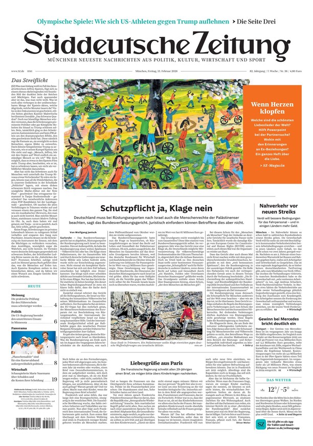 Die Süddeutsche Zeitung (SZ) liefert tagesaktuell Nachrichten und Hintergrundberichte aus Politik, Wirtschaft, Sport und Kultur. Das ePaper der Tageszeitung informiert Sie über alle relevanten News. Mit der Beilage des SZ Magazins am Freitag! Weiterlesen...