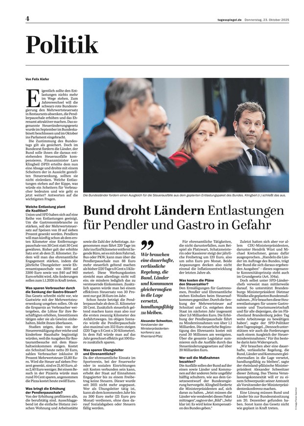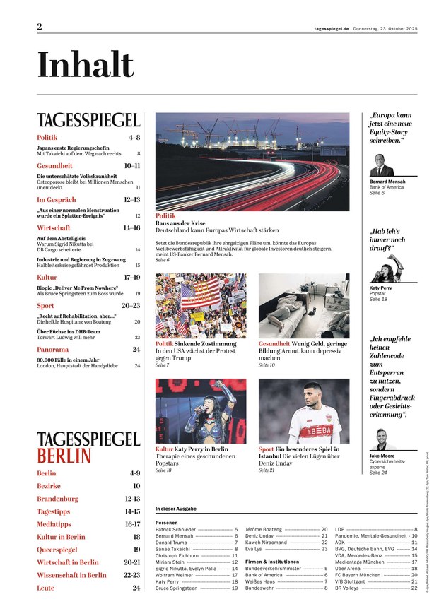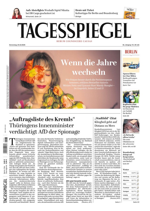 Der Tagesspiegel ist eine Tageszeitung, die seit 1945 im Tagesspiegel Verlag erscheint. Die Redaktion berichtet zu den Themen Politik, Wirtschaft, Sport und Kultur – direkt aus Berlin. Diese Tageszeitung können Sie als Einzel-, Monats- oder Jahresabonnement im iKiosk erwerben, direkt online lesen und auch als PDF herunterladen. Weiterlesen...