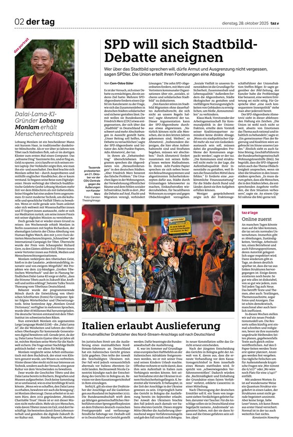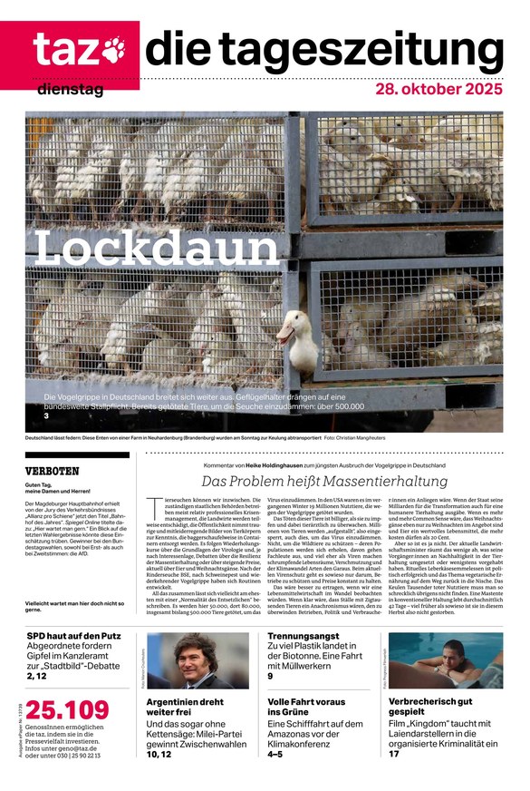 Von Politik über Wirtschaft und Gesellschaft bis hin zum Sport - taz die tageszeitung informiert Sie im ePaper über aktuelle Themen aus Deutschland und der ganzen Welt. Weiterlesen...