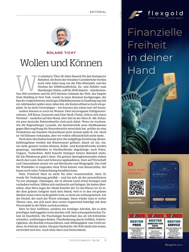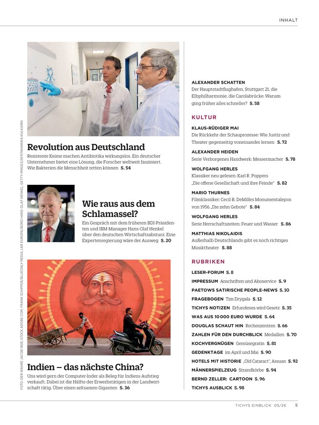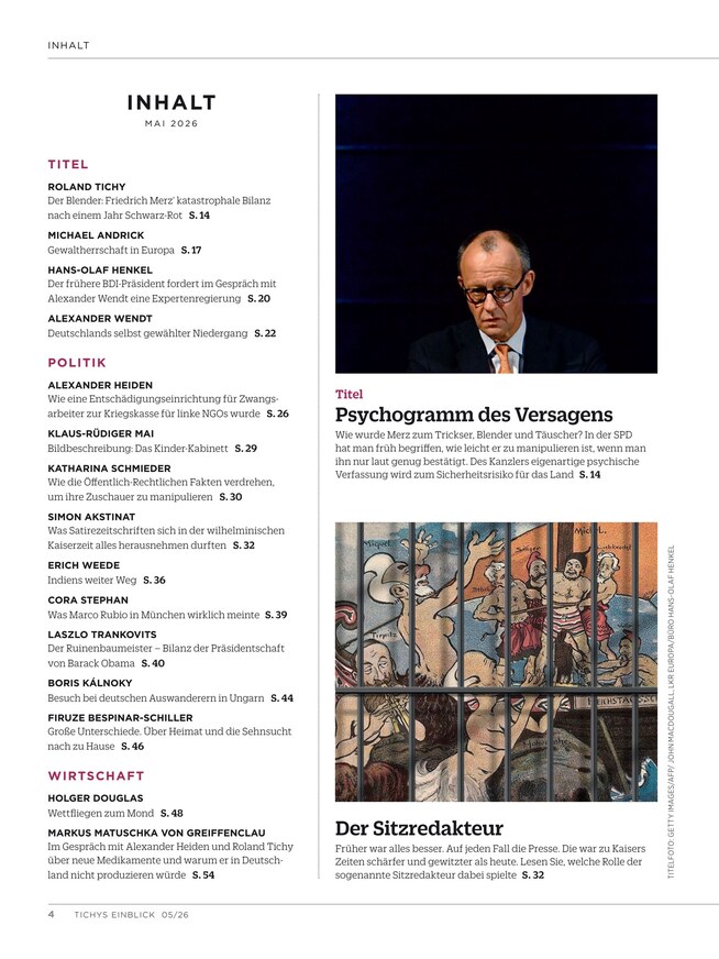 Das Magazin Tichys Einblick steht für kritische Standpunkte zu Politik, Wirtschaft & Kultur. Bleiben Sie mit dem ePaper über aktuelle Themen aus aller Welt informiert. Weiterlesen...