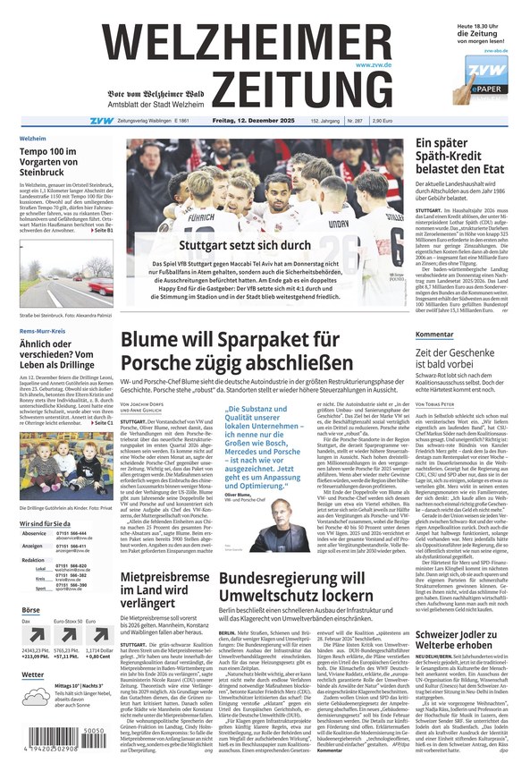 Die Welzheimer Zeitung für tagesaktuelle Neuigkeiten aus der Region
