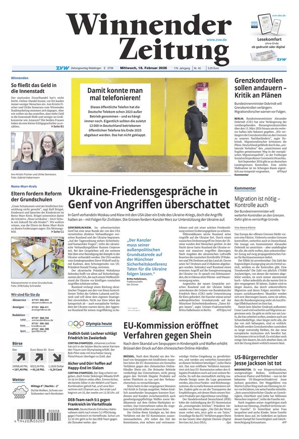 Unter anderem berichtet die Winnender Zeitung aus folgenden Ressorts: