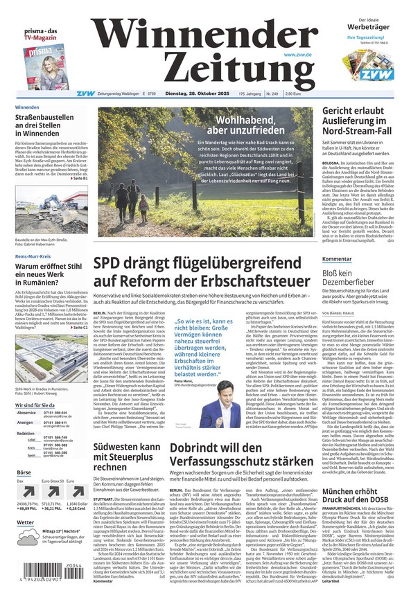 Unter anderem berichtet die Winnender Zeitung aus folgenden Ressorts: