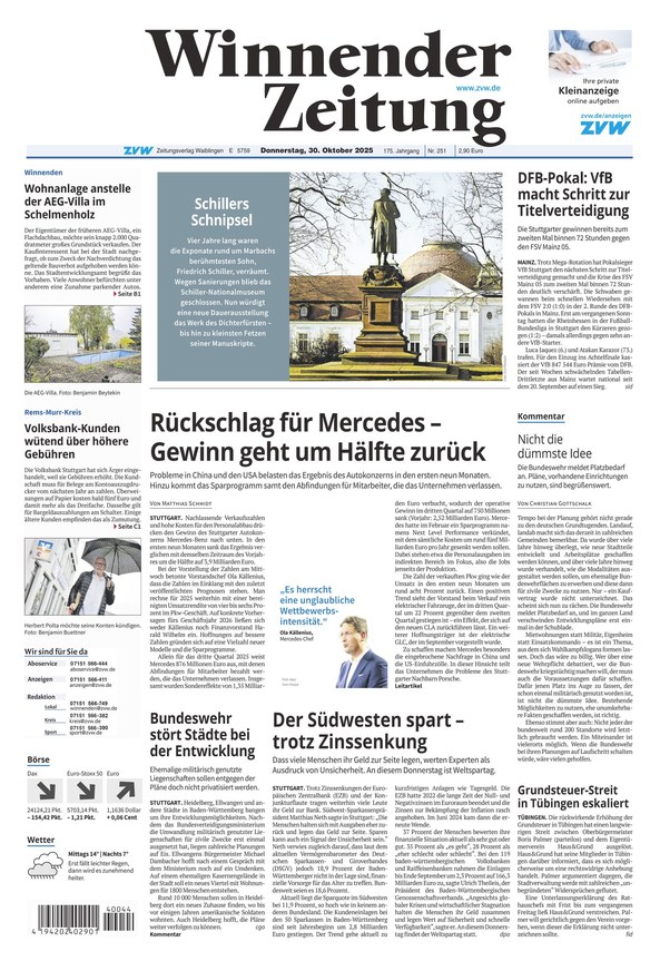 Unter anderem berichtet die Winnender Zeitung aus folgenden Ressorts: