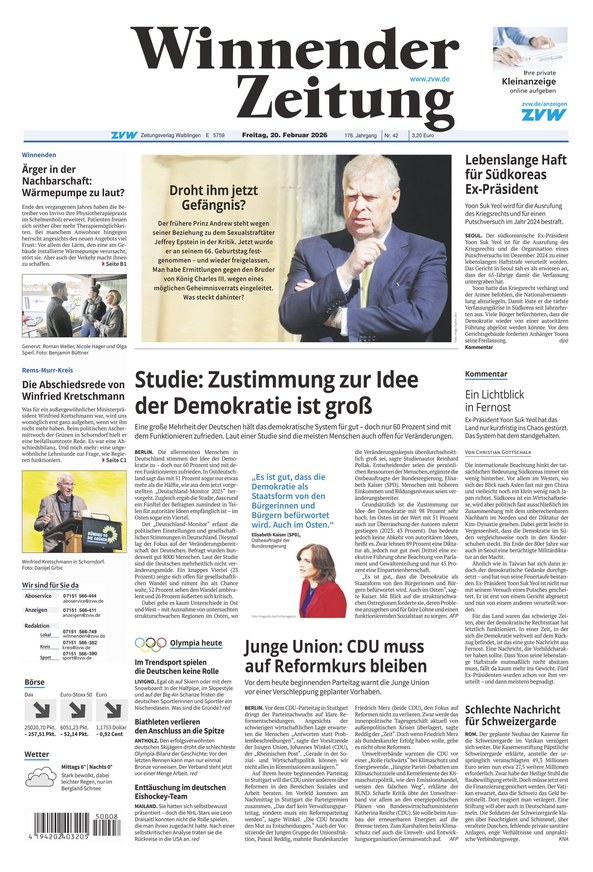 Unter anderem berichtet die Winnender Zeitung aus folgenden Ressorts: