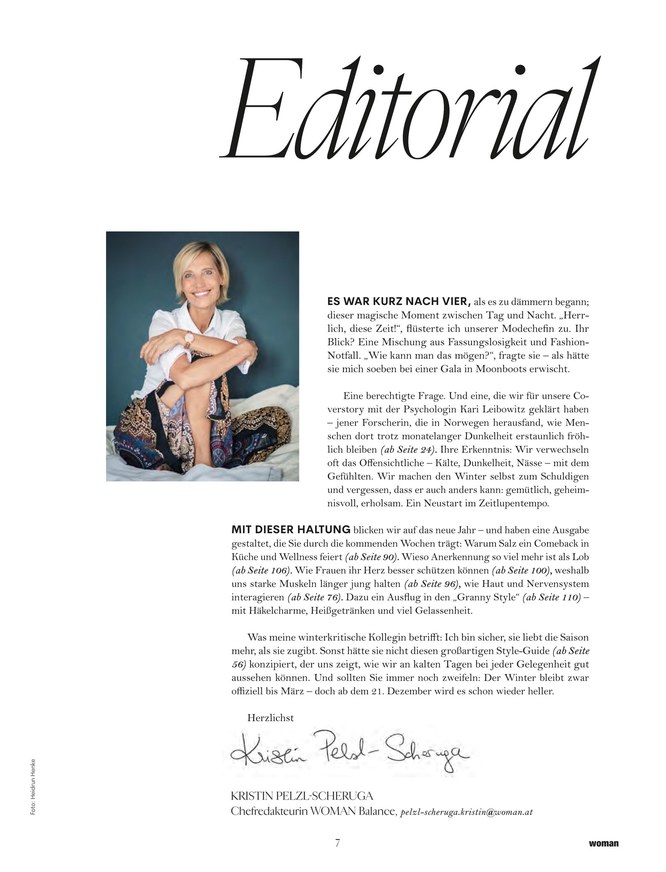 Die österreichische Frauenzeitschrift WOMAN begeistert ihre Leserinnen mit Tipps und Inspiration in Sachen Mode, Beauty, Gesundheit, Ernährung, Fitness und Freizeit. Das ePaper greift aktuelle Trends auf, fasziniert mit spannenden Reportagen und informiert alle 14 Tage über sämtliche Themen, die moderne Frauen interessieren.