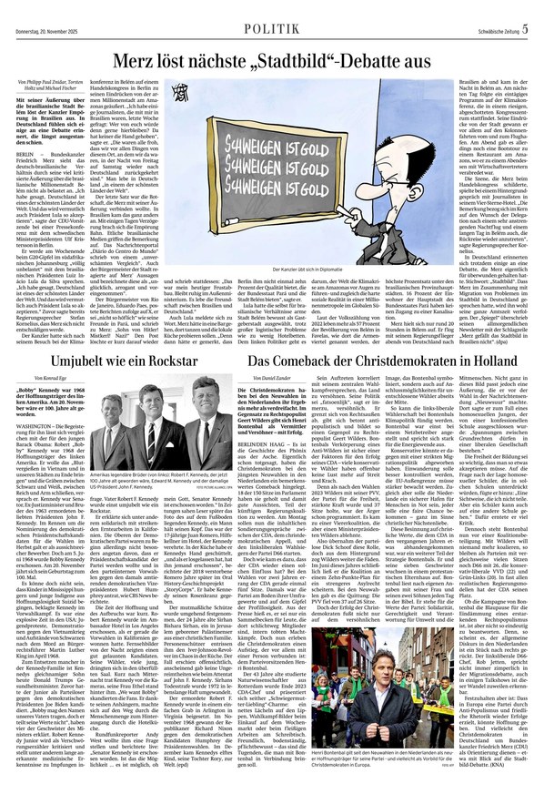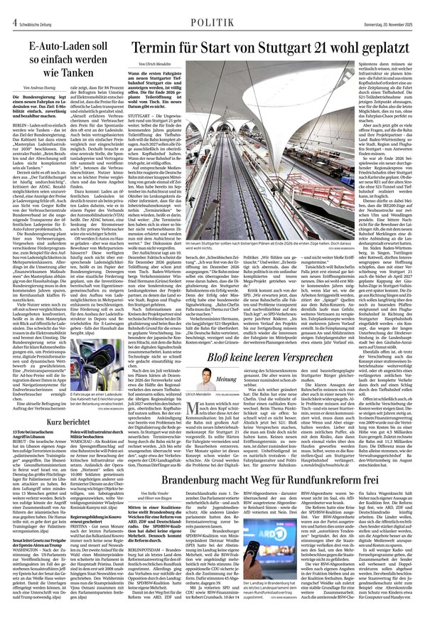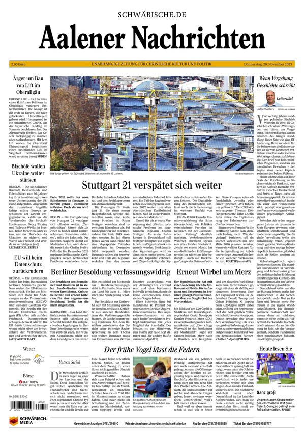 Unter anderem finden Sie im ePaper der Aalener Nachrichten folgende Rubriken und Ressorts: