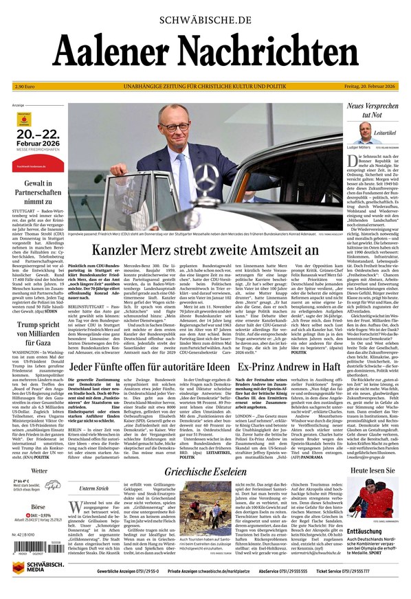 Unter anderem finden Sie im ePaper der Aalener Nachrichten folgende Rubriken und Ressorts: