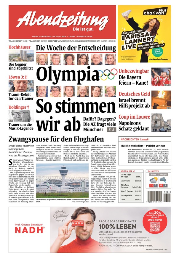 Neueste Nachrichten aus dem Ballungsraum München und dem bayerischen Umland, Aktuelles zu Promis, Kultur, Politik und Sport lesen Sie im ePaper der Abendzeitung München. Weiterlesen...