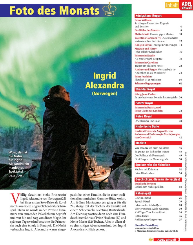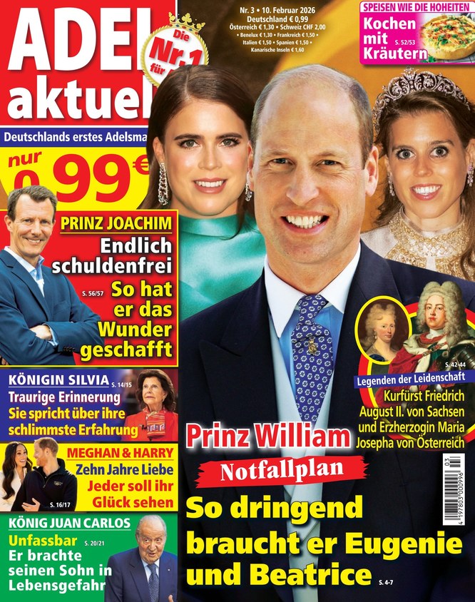 ADEL aktuell zeigt aber auch wie die Hoheiten wohnen, verrät die Rezepte aus königlichen Küchen, kennt die Gesundheitsprobleme hinter Palastmauern, präsentiert königliche Mode.