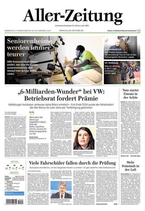 Die Aller-Zeitung berichtet von Montag bis Sonntag über alles, was im Landkreis Gifhorn und darüber hinaus wichtig ist. Nachrichten aus Gifhorn, Brome, Meinersen, Isenbüttel, Papenteich, Wesendorf, Sassenburg und dem Boldecker Land sorgen dafür, dass Sie über alle wichtigen Themen auf dem Laufenden bleiben. Besonders praktisch: Das ePaper der Tageszeitung ist online lesbar und als PDF downloadbar.