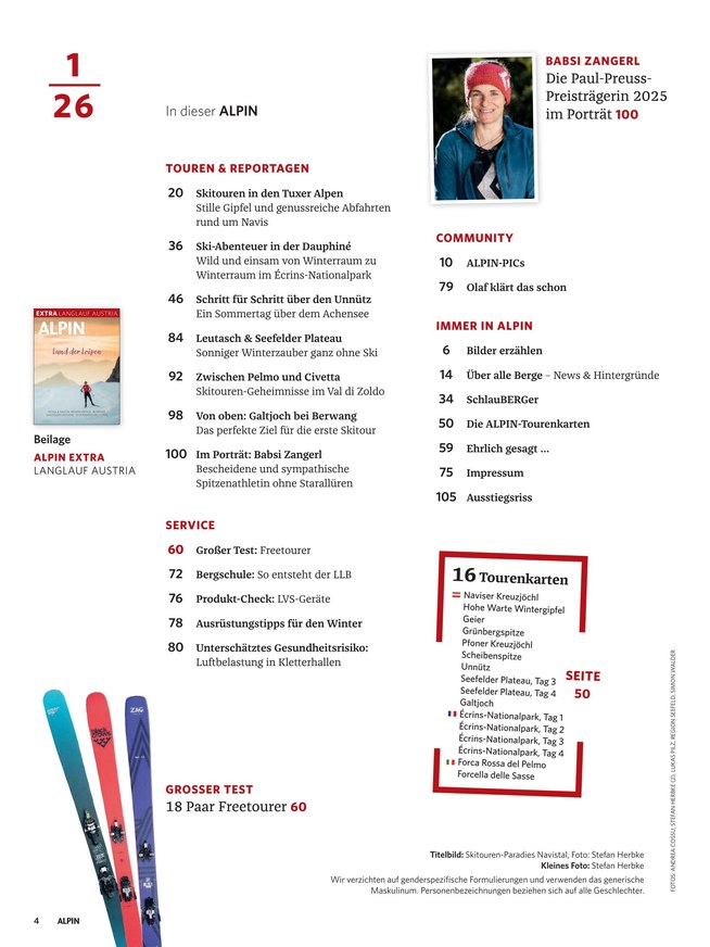 Die Zeitschrift Alpin richtet sich an Bergsteiger und Bergwanderer, zudem werden auch weitere Outdoor-Aktivitäten wie das Klettern, Trekking oder Tourenskifahren besprochen. Weiterlesen...