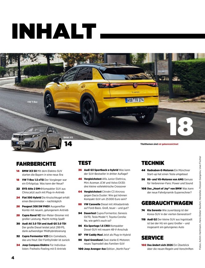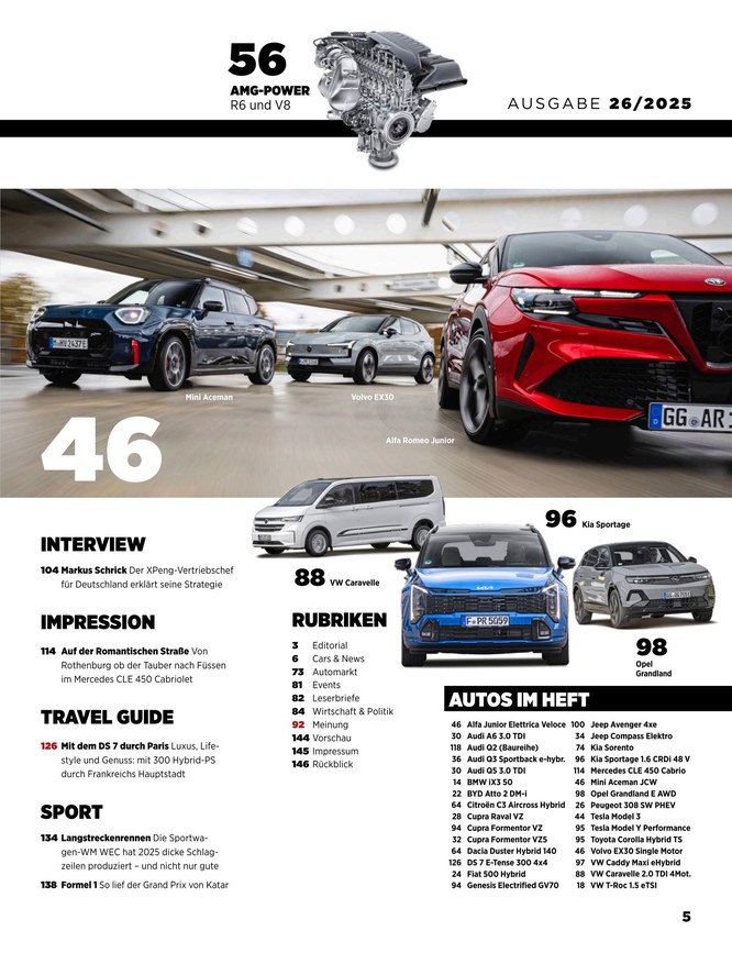 Beim Dreierkampf der Spitze mit Audi, BMW und Mercedes bekommen auch Opel, Renault oder Hyundai die Chance sich auf dem Markt zu etablieren und in diesem Heft einen Daumen nach oben zu erhalten. Es werden jedoch auch unbekanntere Marken vorgestellt wie CSE, Aston oder Kia. Und wer träumt nicht vom Komfort eines Alpin A110?