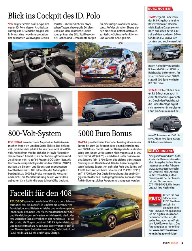 Das Magazin Straßenverkehr, kann für jeden Autofahrer nützlich sein. Es ist sachlich, kompetent und übersichtlich hinsichtlich des dynamischen Automarkts. Das Magazin liefert klare Empfehlungen und erscheint 26 mal im Jahr.