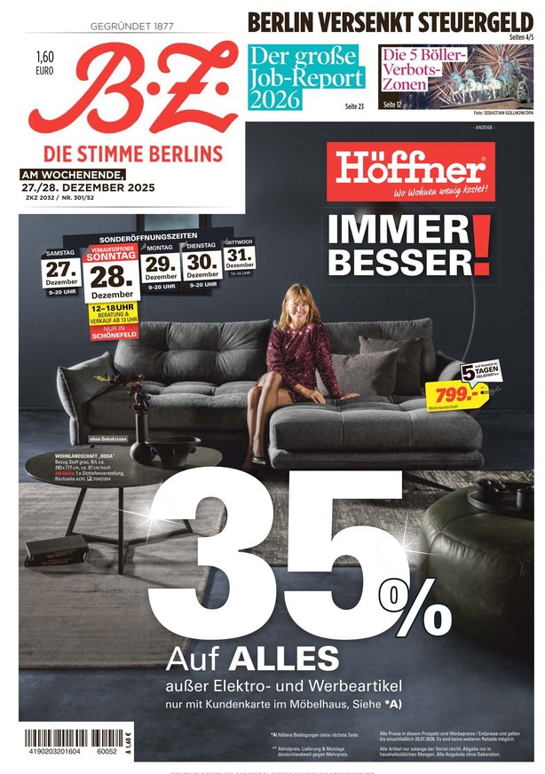 Vom 27.12.2025 Die B.Z. erscheint ab sofort von Montag bis Samstag