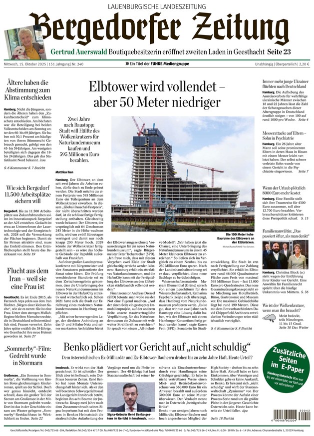 Die BERGEDORFER ZEITUNG liefert lokale Nachrichten für den Kreis Lauenburg/Bergedorf. Das ePaper der Tageszeitung hält Sie zudem über regionale, nationale und internationale News auf dem Laufenden. Weiterlesen...