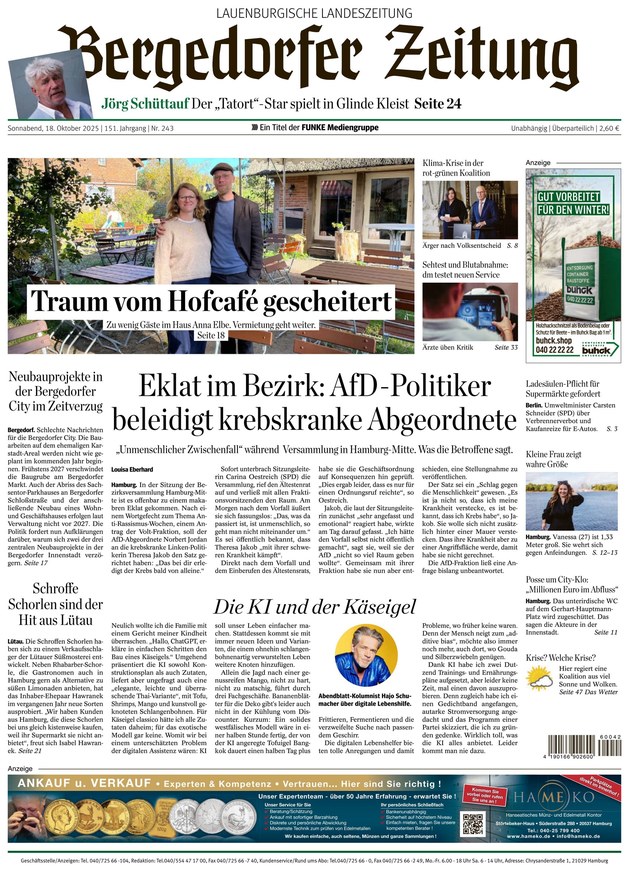 Die BERGEDORFER ZEITUNG liefert lokale Nachrichten für den Kreis Lauenburg/Bergedorf. Das ePaper der Tageszeitung hält Sie zudem über regionale, nationale und internationale News auf dem Laufenden. Weiterlesen...