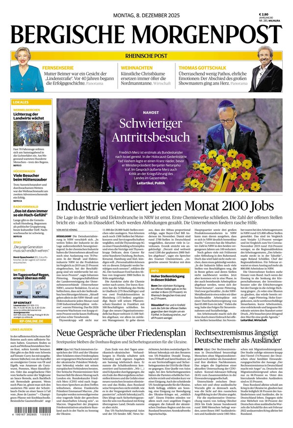 Die Bergische Morgenpost ist eine lokale Ausgabe der Tageszeitung Rheinische Post für das Bergische Land. Im ePaper finden Sie alle relevanten Nachrichten aus der Region, Deutschland und der Welt. Weiterlesen...