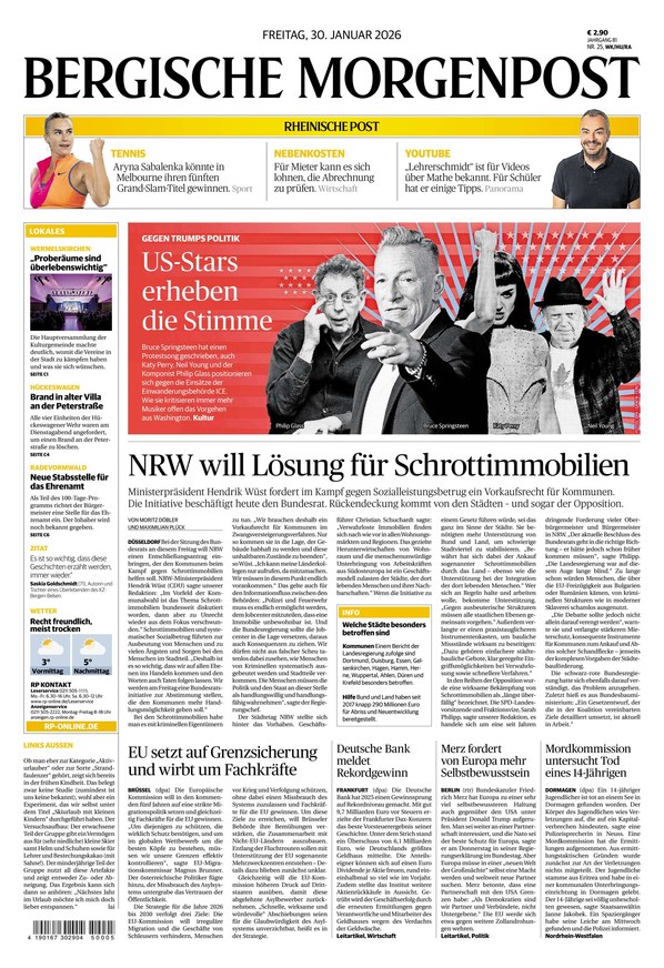 In der Bergischen Morgenpost erfahren Sie täglich alle aktuellen Nachrichten aus dem Bergischen Land, Nordrhein-Westfalen, Deutschland, Europa und der Welt. Die lokale Tageszeitung aus NRW erscheint montags bis samstags - auch in einer digitalen Version als ePaper.