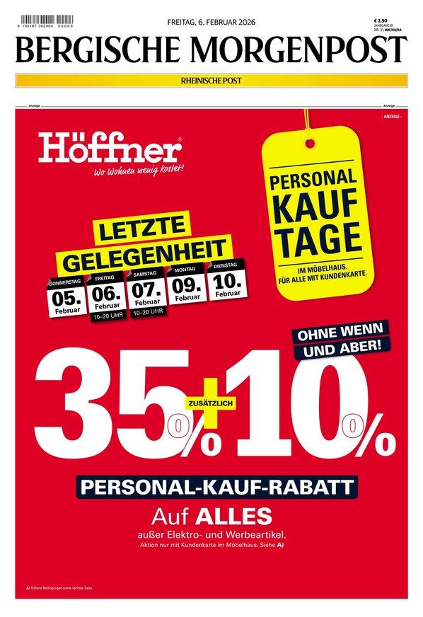 Die Bergische Morgenpost ist eine lokale Ausgabe der Tageszeitung Rheinische Post für das Bergische Land. Im ePaper finden Sie alle relevanten Nachrichten aus der Region, Deutschland und der Welt. Weiterlesen...