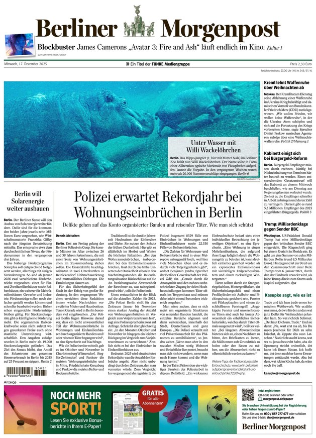 Aktuelle Nachrichten aus der Welt und der Region, Wirtschaft, Politik und Kultur lesen Sie im ePaper der Berliner Morgenpost. Weiterlesen...