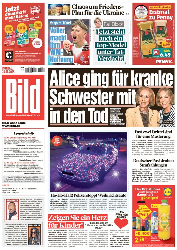 "BILD dir deine Meinung" – so lautet der Slogan der größten überregionalen Tageszeitung Deutschlands, die auch als ePaper erhältlich ist. Die BILD präsentiert von Montag bis Samstag Schlagzeilen, Stories, Reportagen und Interviews über die ganz Deutschland spricht. Aktuelle Nachrichten aus den Bereichen Politik, Wirtschaft, Promis, Lifestyle und Sport werden ergänzt durch Service-Artikel zu den Themen Finanzen, Gesundheit, Wellness, Beauty, Mode, Urlaub, Haushalt, Technik und Internet.