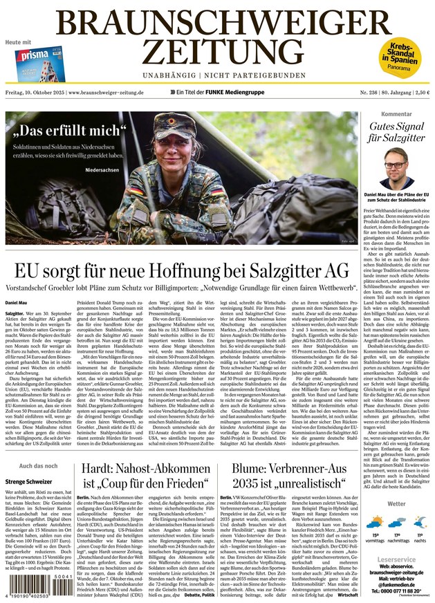 Die Braunschweiger Zeitung berichtet über Politik, Wirtschaft und aktuelle Nachrichten aus Braunschweig, Region und Niedersachen. Zusätzlich gibt es auch Informationen über die Themenfelder Sport, Boulevard und einen Ratgeber