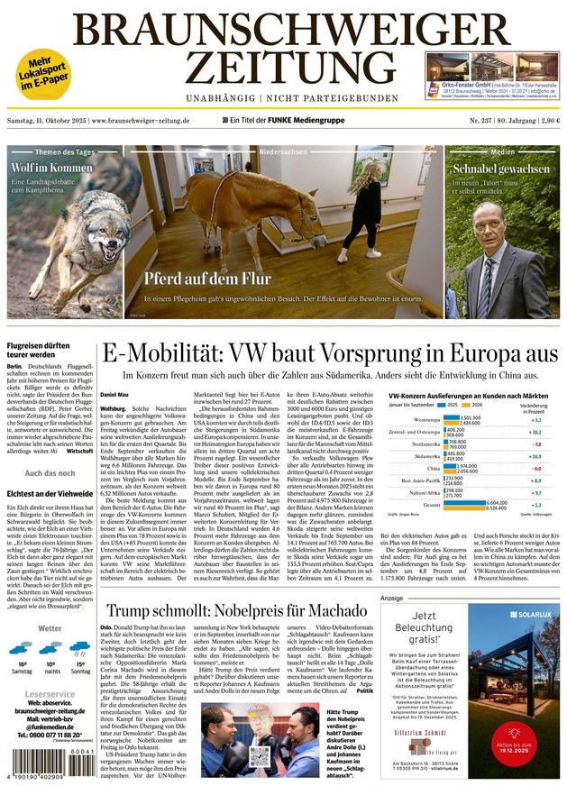 Die Braunschweiger Zeitung berichtet über Politik, Wirtschaft und aktuelle Nachrichten aus Braunschweig, Region und Niedersachen. Zusätzlich gibt es auch Informationen über die Themenfelder Sport, Boulevard und einen Ratgeber