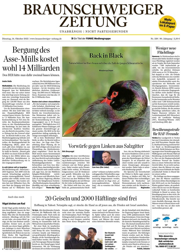 Die Braunschweiger Zeitung berichtet über Politik, Wirtschaft und aktuelle Nachrichten aus Braunschweig, Region und Niedersachen. Zusätzlich gibt es auch Informationen über die Themenfelder Sport, Boulevard und einen Ratgeber
