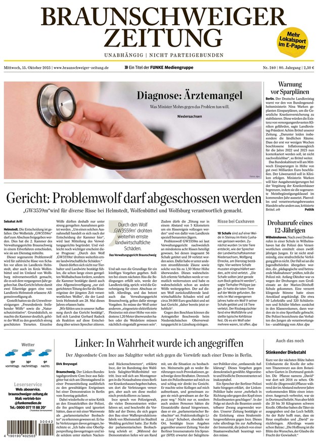 Die Braunschweiger Zeitung berichtet über Politik, Wirtschaft und aktuelle Nachrichten aus Braunschweig, Region und Niedersachen. Zusätzlich gibt es auch Informationen über die Themenfelder Sport, Boulevard und einen Ratgeber