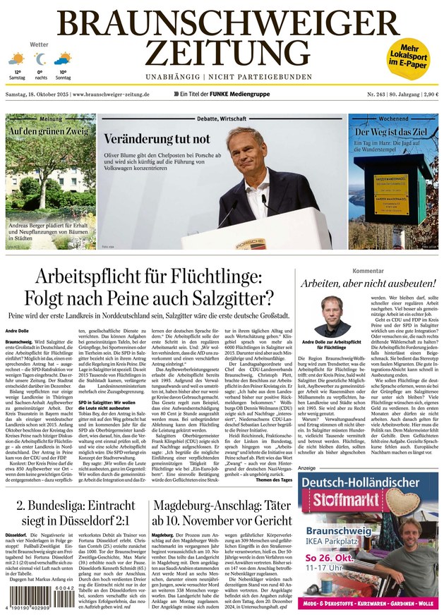 Die Braunschweiger Zeitung berichtet über Politik, Wirtschaft und aktuelle Nachrichten aus Braunschweig, Region und Niedersachen. Zusätzlich gibt es auch Informationen über die Themenfelder Sport, Boulevard und einen Ratgeber