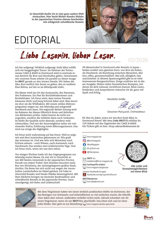 Was macht gutes Brot eigentlich aus? Wie wurde Brot so bedeutend? Darum geht es unter anderem in BROT, der Zeitschrift rund ums Brot backen und genießen, mit vielen tollen Rezepten. Außerdem lesen Sie interessante Geschichten rund ums Brot und die Menschen die dahinterstecken. Das perfekte Lesevergnügen für alle Brotliebhaber und Hobbybäcker!