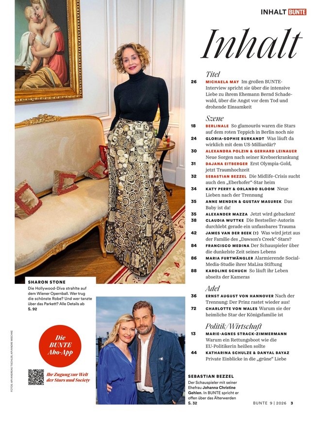 Neues aus der Welt der Reichen und Schönen, der Stars und Sternchen, der Royals und des Adels liest man jeden Donnerstag in der BUNTEN. Auch aktuelle Trends aus den Bereichen Beauty, Mode, Lifestyle und Gesundheit werden aufgegriffen. Seit mehr als 60 Jahren steht die BUNTE für Society-Berichterstattung, die sich durch exklusive Interviews, einzigartige Promi-Schnappschüsse und überraschende Enthüllungen auszeichnet. Die wöchentlich erscheinende Illustrierte ist auch als ePaper erhältlich - im Abo oder als Einzelausgaben.