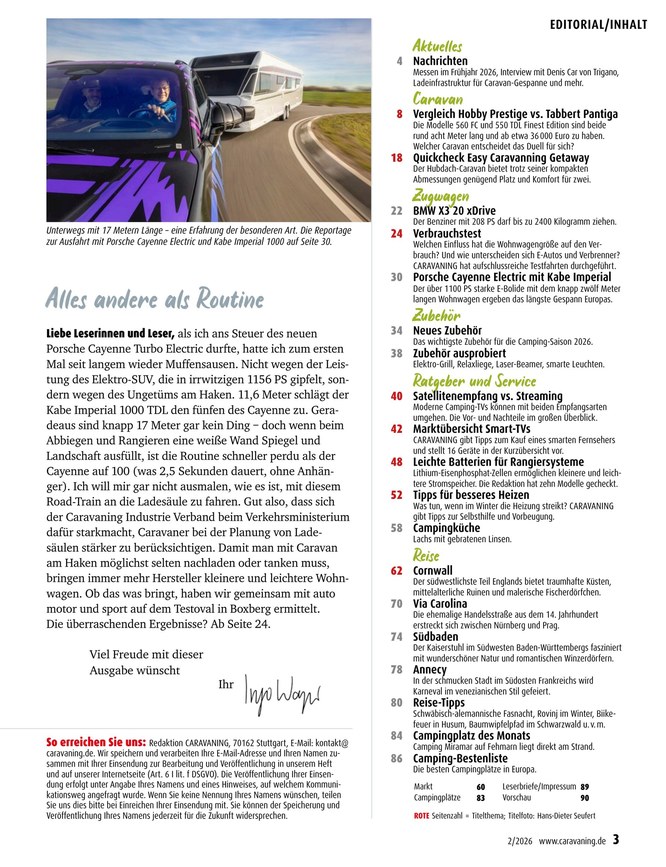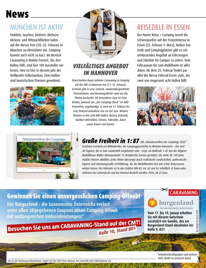 Das Magazin Caravaning erscheint monatlich und zeigt nicht nur die neuesten Modelle der Saison, sondern enthält auch clevere Tipps und Tricks für unterwegs.
