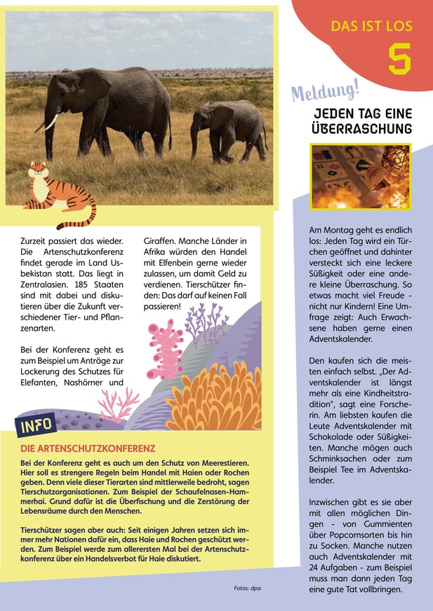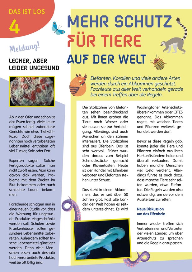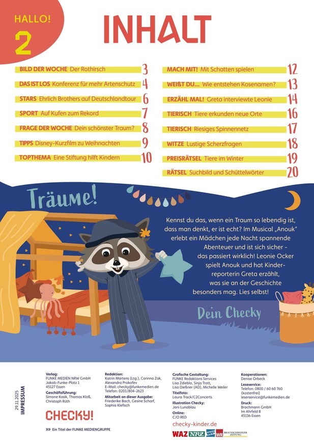 Kinder wollen mit ihren Fragen und ihrem Wissensdurst ernst genommen werden. Deshalb bringt CHECKY! Ihrem Kind anspruchsvolle Themen und Nachrichten aus aller Welt auf spielerische Art und Weise nahe. Dabei erscheint CHECKY! in kindgerechtem Look – mit buntem Layout, großer Schrift für Leseanfänger und verschiedenen Textlängen für unterschiedliche Altersgruppen. So eignet sich die Kinderzeitung auch schon für Erstleser. Auch Kinder zwischen 6-12 Jahren finden in CHECKY! Texte, die ihren Interessen und Lesefähigkeiten entsprechen. So sind junge Leser nicht nur jede Woche gut informiert, sondern sie trainieren ganz nebenbei auch noch ihre Lesefähigkeiten.