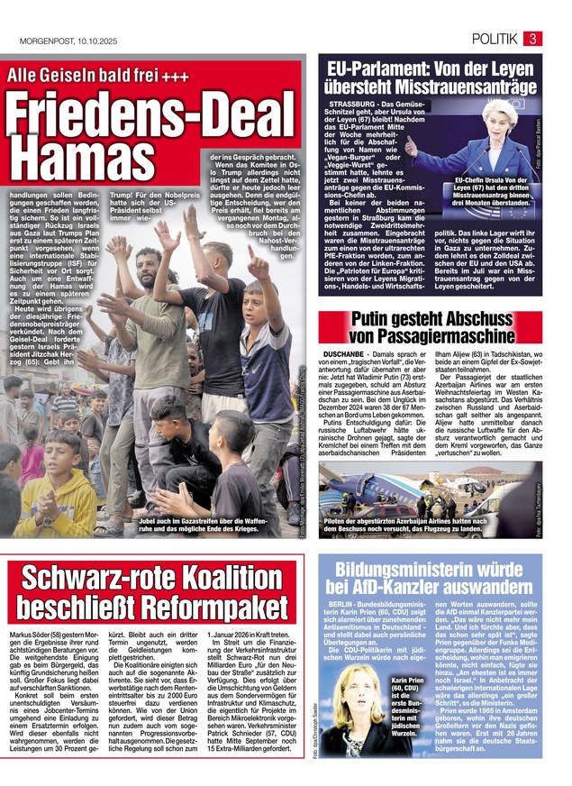 Unter anderem berichtet die Chemnitzer Morgenpost aus folgenden Ressorts: