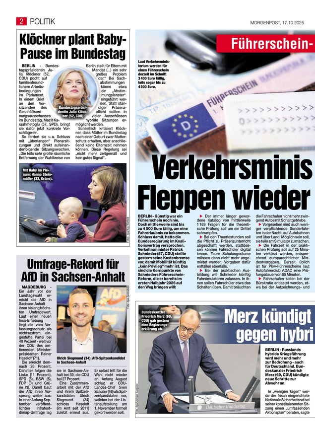 Unter anderem berichtet die Chemnitzer Morgenpost aus folgenden Ressorts: