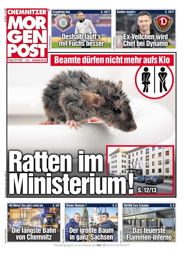 Alles, was in Chemnitz und Umgebung wichtig ist, steht täglich in der Chemnitzer Morgenpost. Die Tageszeitung erscheint Montag bis Samstag. Das ePaper wird - ebenso wie die gedruckte Ausgabe - auch weit über die Stadtgrenze hinaus gelesen.
