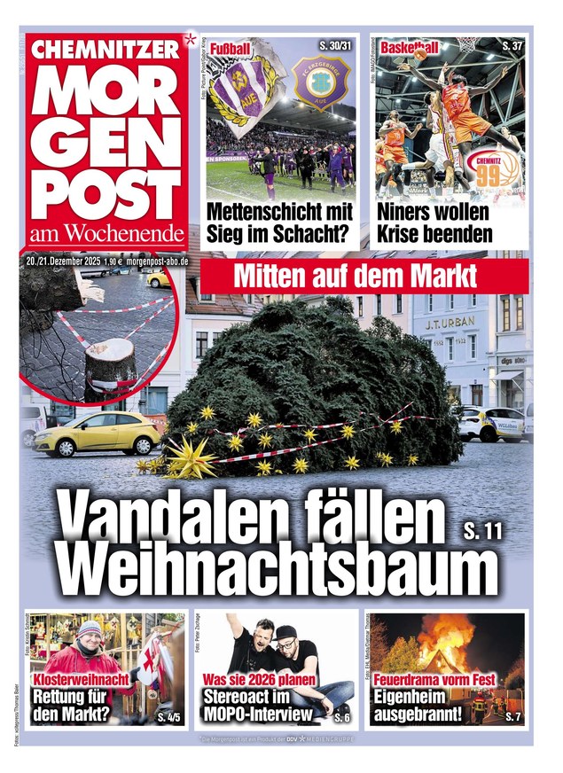 Alles, was in Chemnitz und Umgebung wichtig ist, steht täglich in der Chemnitzer Morgenpost. Die Tageszeitung erscheint Montag bis Samstag. Das ePaper wird - ebenso wie die gedruckte Ausgabe - auch weit über die Stadtgrenze hinaus gelesen.
