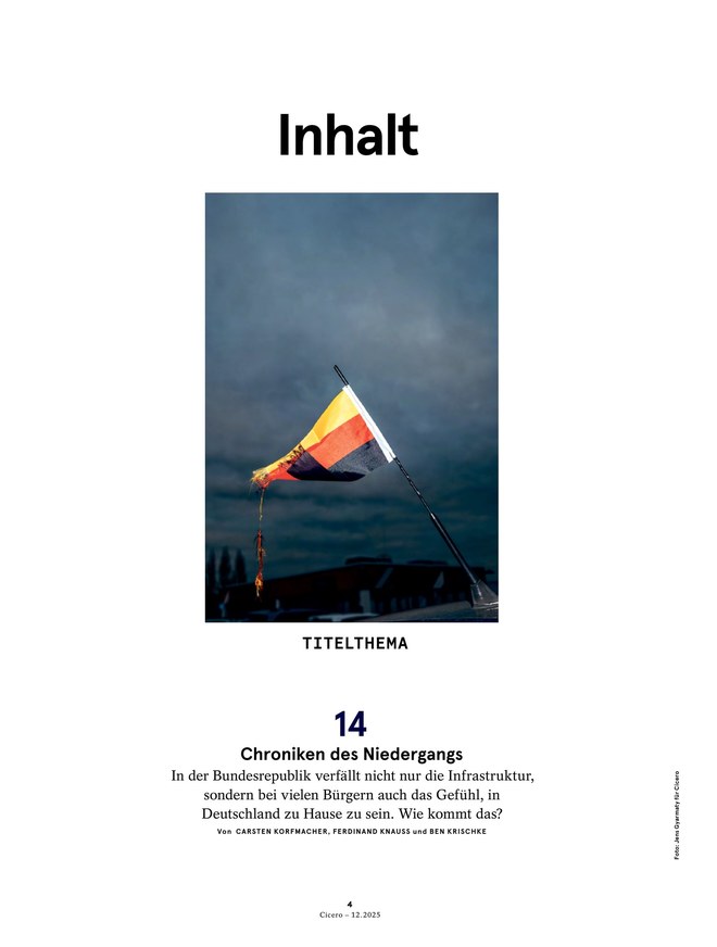 Erfahren Sie mehr über die Hintergründe politischer Aktionen und lernen Sie die politische Kultur Deutschlands und der Welt mit Cicero im Detail kennen. Im iKiosk können Sie das Polit-Magazin als ePaper finden und auf Ihrem Endgerät oder direkt im iKiosk lesen. Cicero erscheint monatlich und kann entweder als Einzelausgabe oder als Abonnement mit einer Laufzeit von drei oder 12 Monaten gekauft werden. Werfen Sie auch einen Blick in unser Archiv, in dem wir zahlreiche vergangene Ausgaben des Magazins für Sie bereithalten.