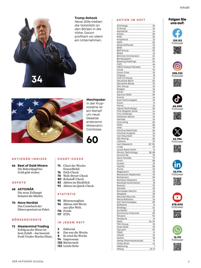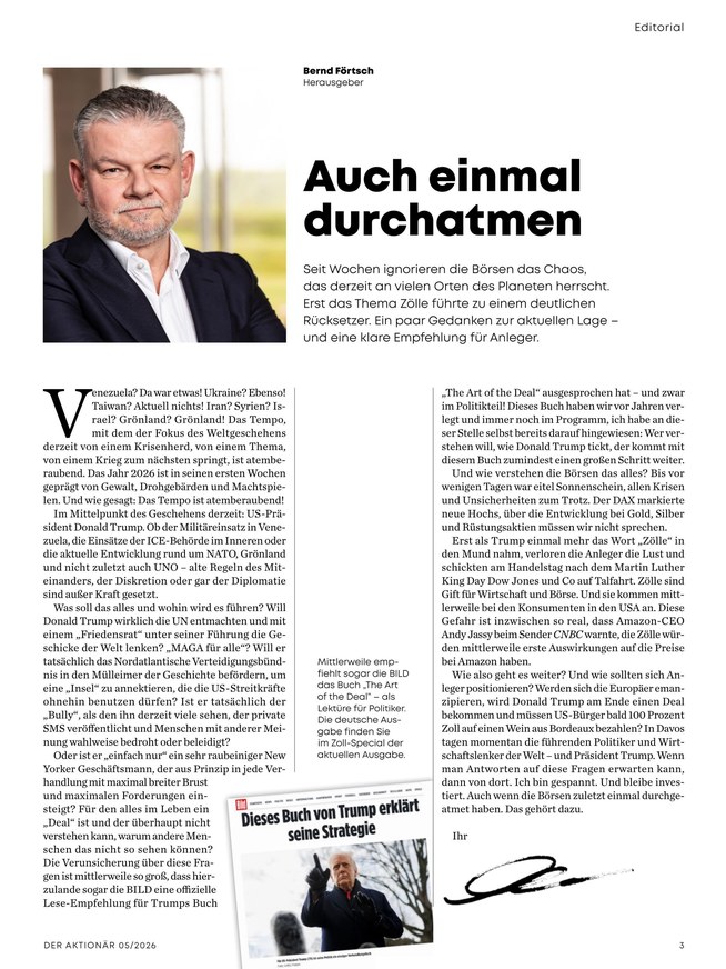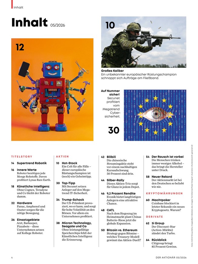 Der Aktionär gilt als das Pflichtblatt an allen deutschen Börsen, denn hier sehen Lesende nicht nur die aktuelle Börsenentwicklung gleich auf den ersten Seiten, vielmehr bietet das Magazin eine breite Mischung von Themen für jede Marktphase.
